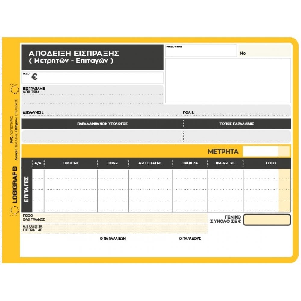Απόδειξη πληρωμής (με ανάλυση μετρητών & αξιογράφων) 231β Αποδεικτικό πληρωμής χρημάτων με ανάλυση για μετρητά ή επιταγές Κωδικός : 231β Διάσταση : 13 X 18 Πολλαπλότητα : 50 X 3 …