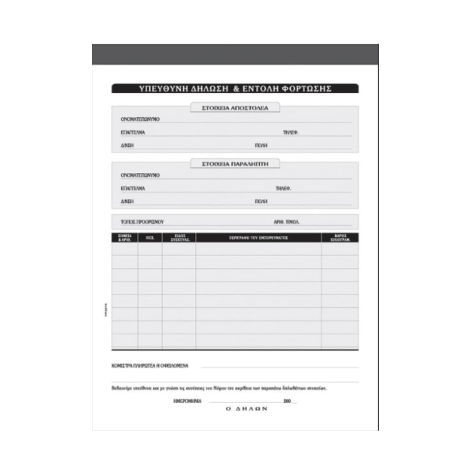 Συγκεντρωτική – Φορτωτική 253 Έντυπο καταγραφής πληροφοριών κατά τις μετακινήσεις εμπορευμάτων από μεταφορέα Κωδικός : 253 Διάσταση : 21 X 29 Πολλαπλότητα : 50 X 4 Αντίγραφα : 3 (Λευκό …