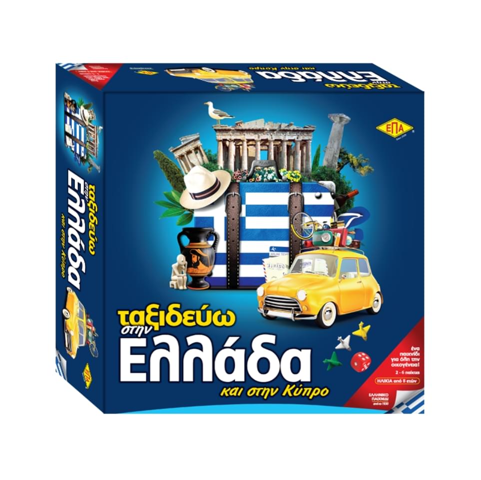 Ελληνικό διασκεδαστικό επιτραπέζιο παιχνίδι γνώσεων.Το «Ταξιδεύω στην Ελλάδα & στην Κύπρο» είναι ένα επιτραπέζιο παιχνίδι με ζάρι για 2 έως 6 παίκτες από 8 ετών και πάνω, που έχει σαν στόχο να γνωρίσουν τα παιδιά την πατρίδα μας. Κάθε παίκτης κάνει ένα εικονικό ταξίδι στον χάρτη, συγκεντρώνοντας γνώσεις για τις πόλεις-σταθμούς που συναντά και προσπαθεί πρώτος να διασχίσει την διαδρομή που του έχει ανατεθεί. Με ένα διασκεδαστικό τρόπο, μαθαίνει την ιστορία κάθε τόπου, τα προϊόντα που παράγει, ενδιαφέροντα μνημεία και άλλα σημαντικά στοιχεία που συνδέουν το παρελθόν με το παρόν. Ανακάλυψε την Ελλάδα μέσα από ένα διασκεδαστικό επιτραπέζιο παιχνίδι! Παράγεται 100% στην Ελλάδα, από την ΕΠΑ που κατασκευάζει ποιοτικά παιχνίδια από το 1930.