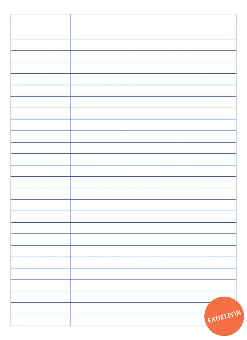 Το κλασσικό μαθητικό μπλε τετράδιο με ετικέτα σε θήκη. Ο καλύτερος συνδυασμός ποιότητας – τιμής. Χαρτί 60gr. W/F.